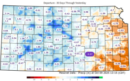 Following early-September rainfall, Kansas saw short-term improvements in soil moisture, but late-season warmth and wind have quickly reversed those gains in some regions. With the state largely in the optimum wheat planting window, now is the time to keep planting and make strategic adjustments for drier soils.
