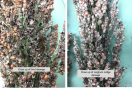 Some grain sorghum fields in Kansas are showing partially blank heads or very small kernels. A number of factors can cause this issue, including weather, insects, or bird damage. Learn what to look for and how to distinguish among possible causes.