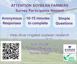 K‑State is conducting a survey to learn more about how irrigated soybeans are managed across Kansas, including irrigation scheduling, yield goals, and pest pressure. Your feedback will help refine research priorities and improve statewide recommendations.